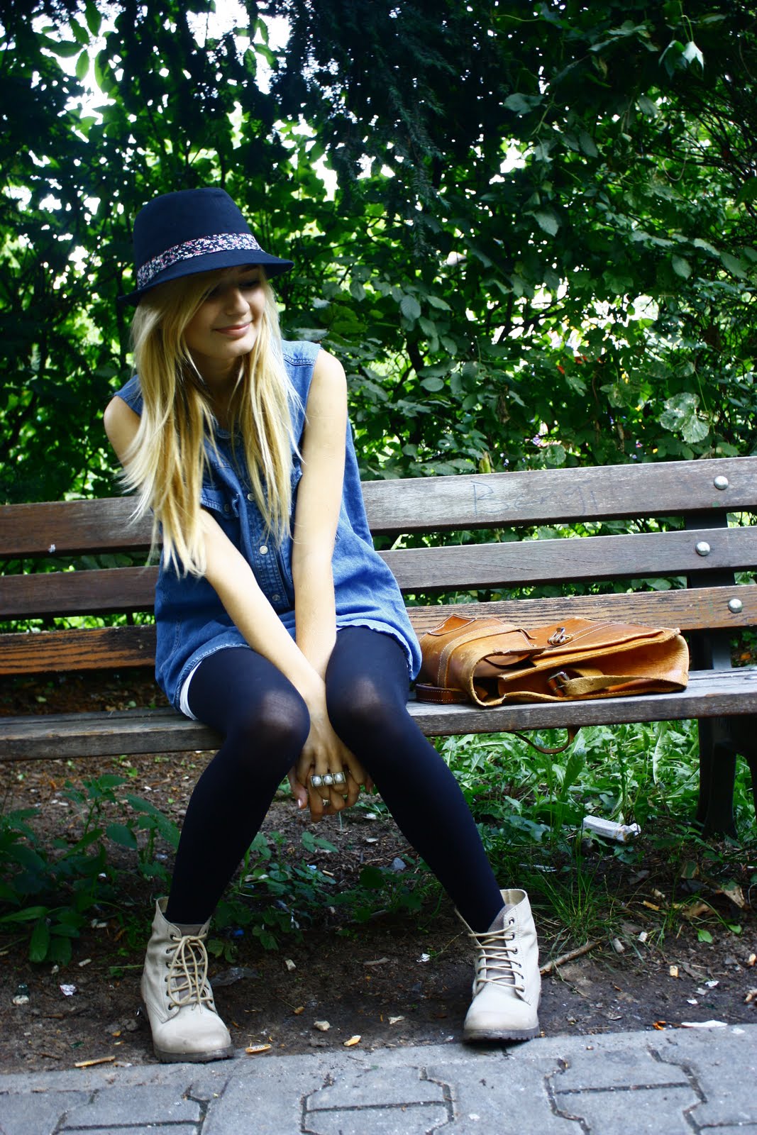 Hut, Schuhe: Primark; Jeanshemd, Tasche: eBay